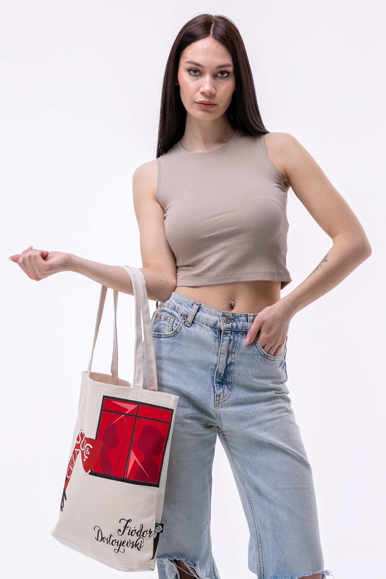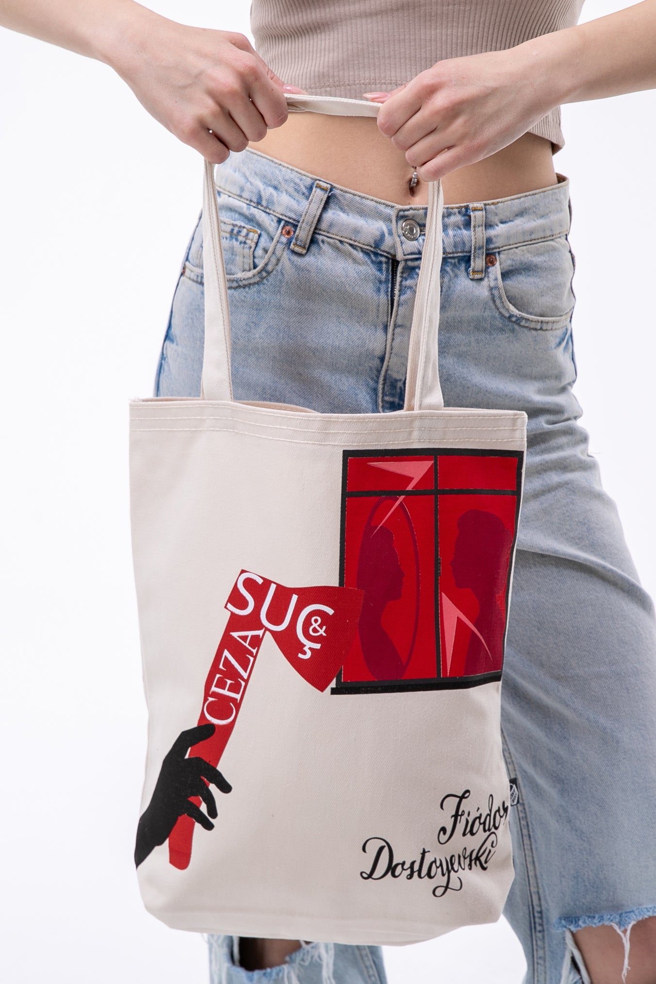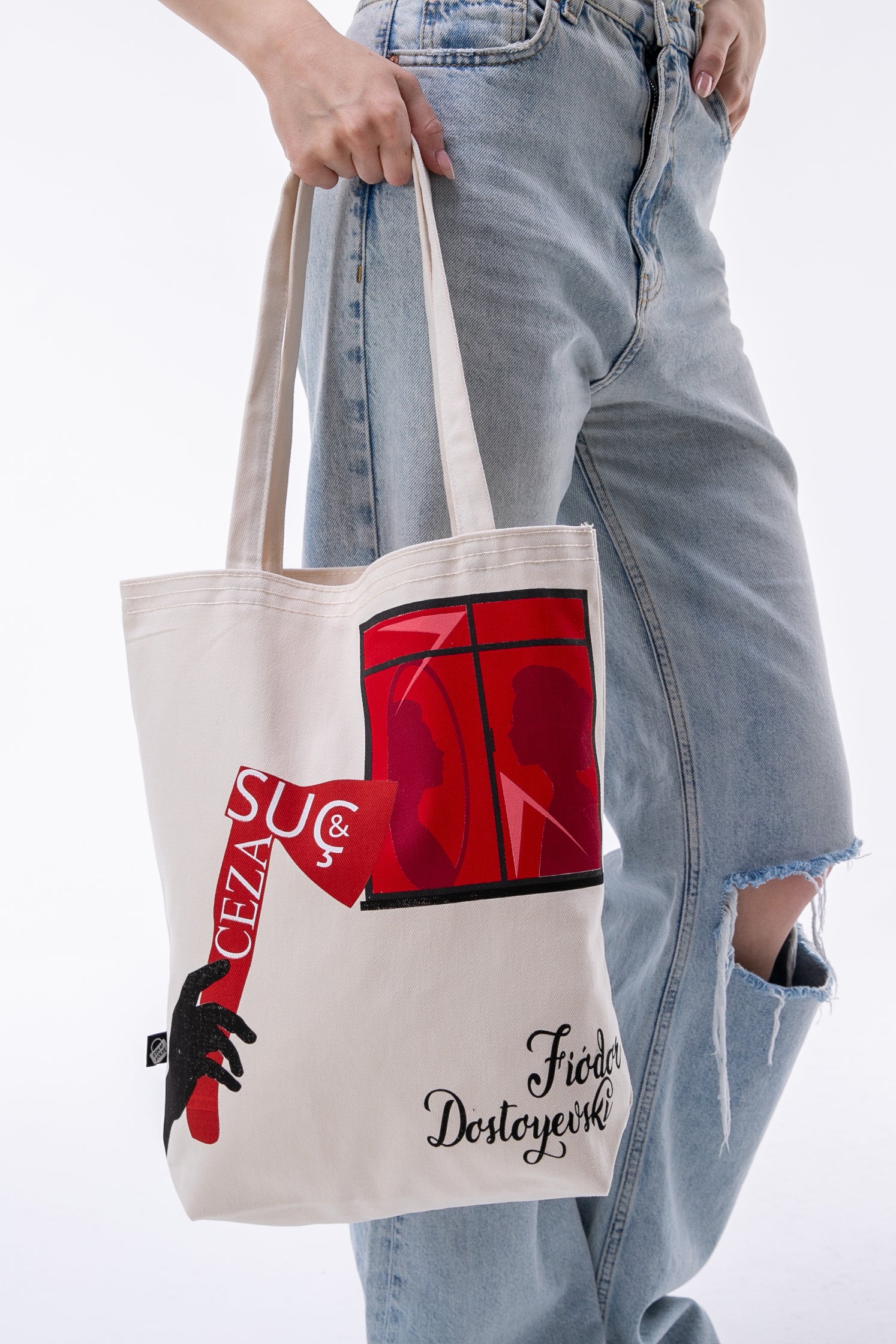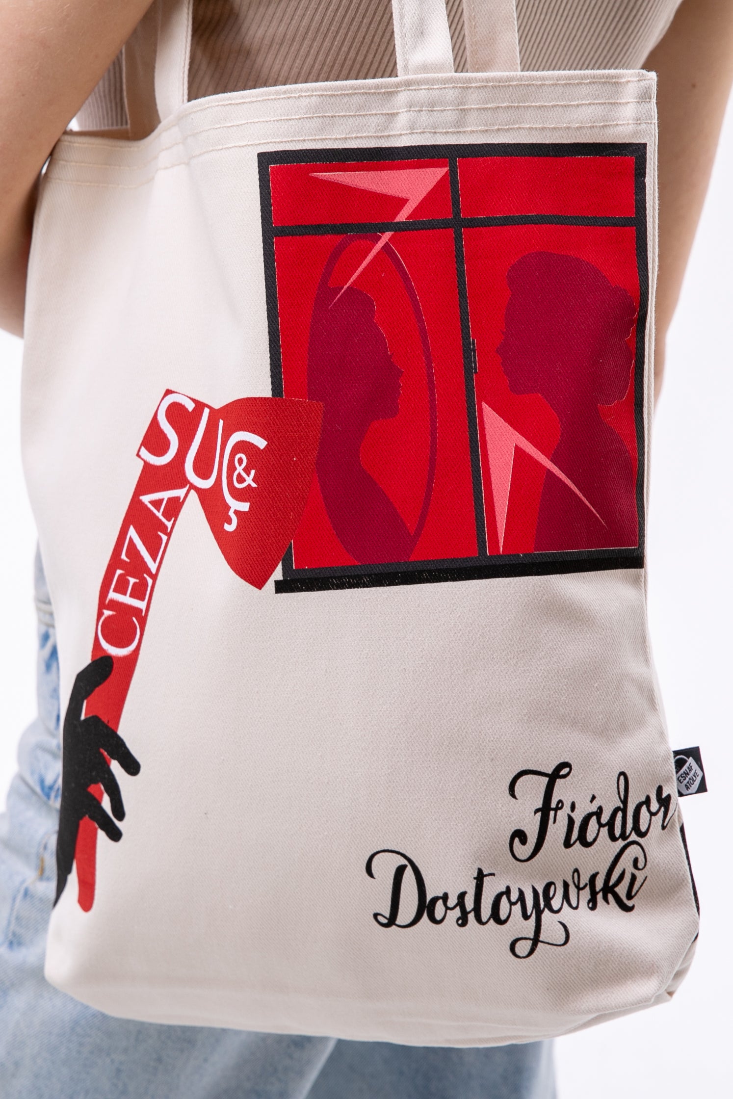 - Fiodor Dostoyevski Suç & Ceza 340gr Gabardin Kumaş 35x40x8cm Bez Çanta